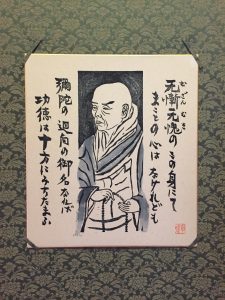 床の間をみると親鸞聖人のご和讃と親鸞聖人のイラストが色紙サイズに書かれてあります。