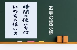 令和8年4月のお寺の掲示板からスタートします。今月の掲示伝道は「時間の使い方は いのちの使い方」という言葉です。