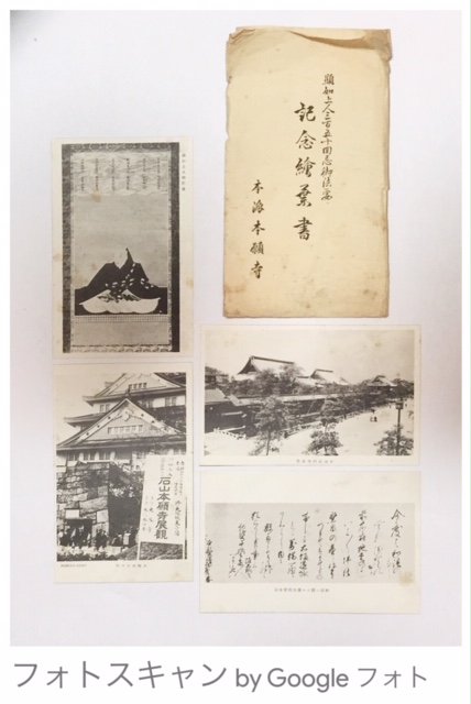 先日ご命日でお参りに伺うとご門徒さんが「こんなんあったよー」と言いながら見せてくれました。記念繪葉書と記されています。