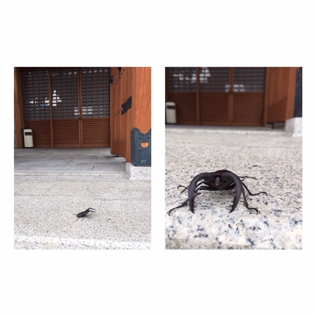 今日はめずらしい方がお参りにみえました。山門のところでゆっくりとお参りされていたらしい。りっぱなクワガタさん。(ノコギリクワガタ)少し赤みがかった艶。大好きなクワガタですが神戸に来てはじめてクワガタを見ました。田舎の実家で子どもの頃よく捕りにいってた。いっぱい捕り、いっぱい殺した記憶が蘇りました。今日ご縁あったクワガタさんは静かに森に帰っていかれました。