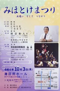 ご案内です。灘区仏教会主催による「みほとけまつり」が開催されます。公演は田辺眞人氏(兵庫津ミュージアム名誉館長・阪神シニアカレッジ学長)による阪神間と平安文学「光る君へ」と灘地域と題されています。