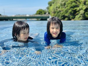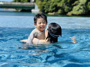 それからはプール付きの温泉宿でゆっくりと。のんびり過ごす時間は何事も代えがたい至福の時間でもありました。1年間休みという概念がないため来年のお盆明けまでまた楽しく法務を全うします。家族でのプールがこんなにも充実するなんて。